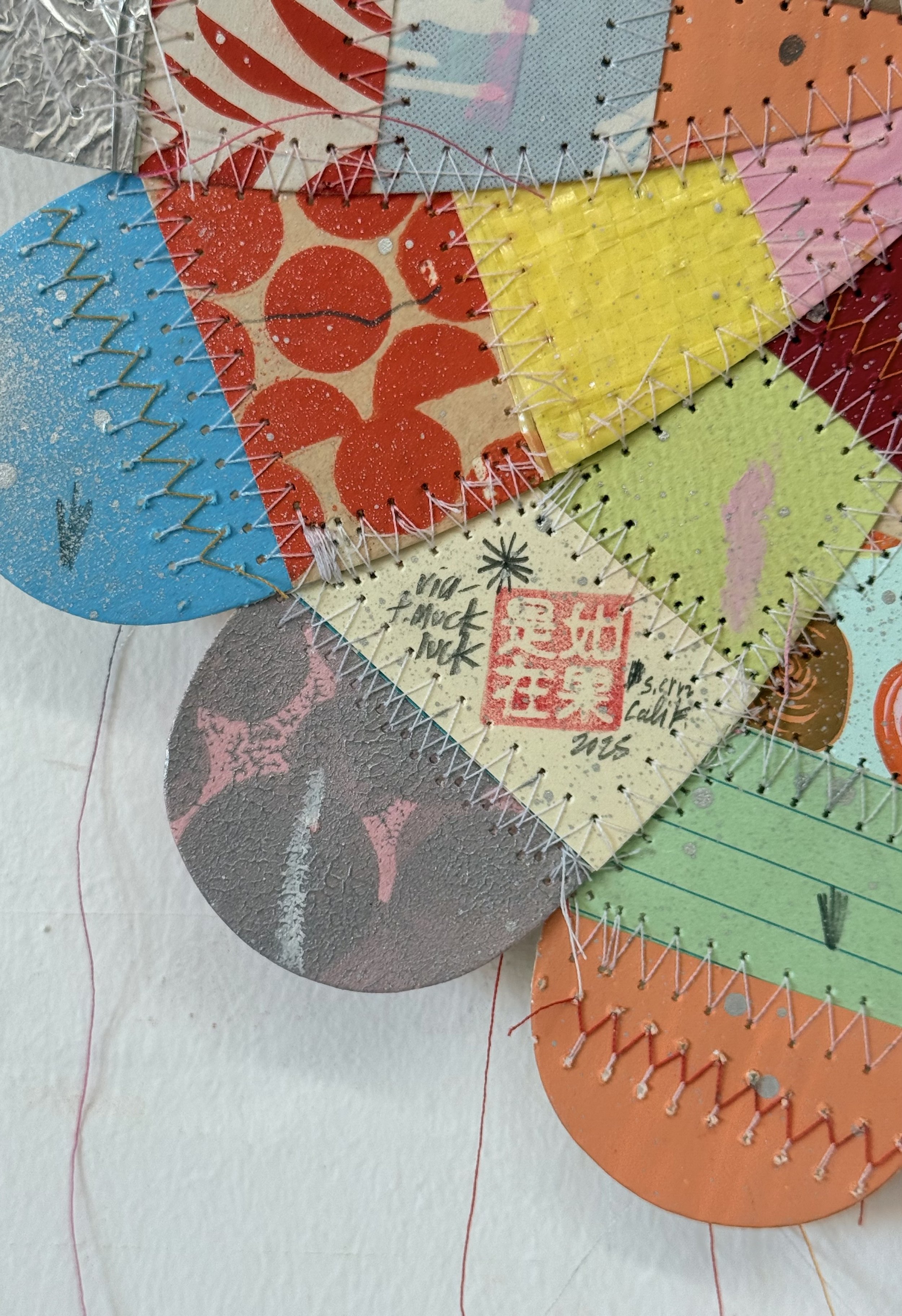 Sewn paper flower - "Green lady" Unframed ( 10.5 inches in diameter) 2025